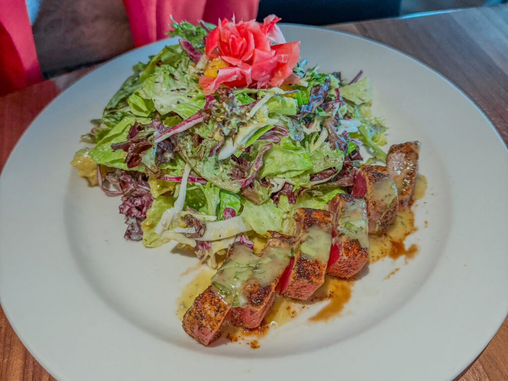 Here are a couple of the salads we’ve had. Plates arrive cold. Greens stay crisp. Dressings taste crafted, not poured.