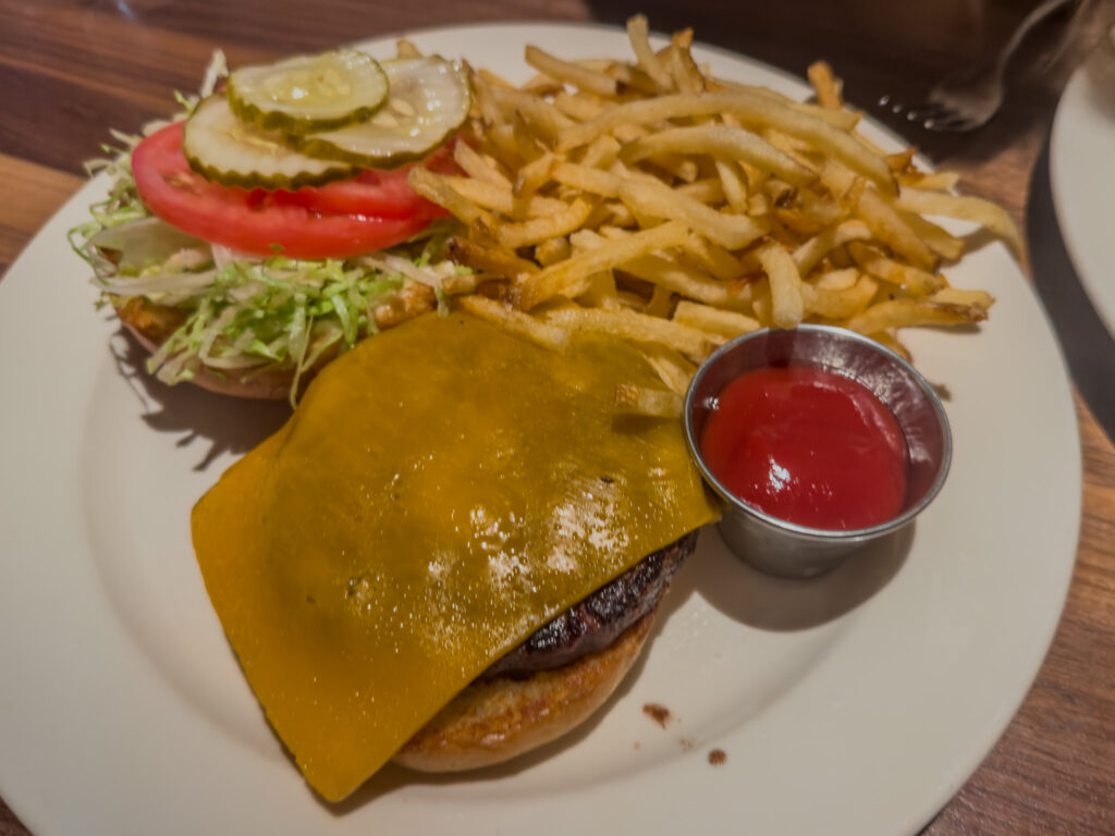 Fully loaded with cheddar, ground fresh in-house daily, with fresh fries. The patty picks up a gentle kiss of the grill, and the stack is built with care. A reminder that straightforward can still be special.