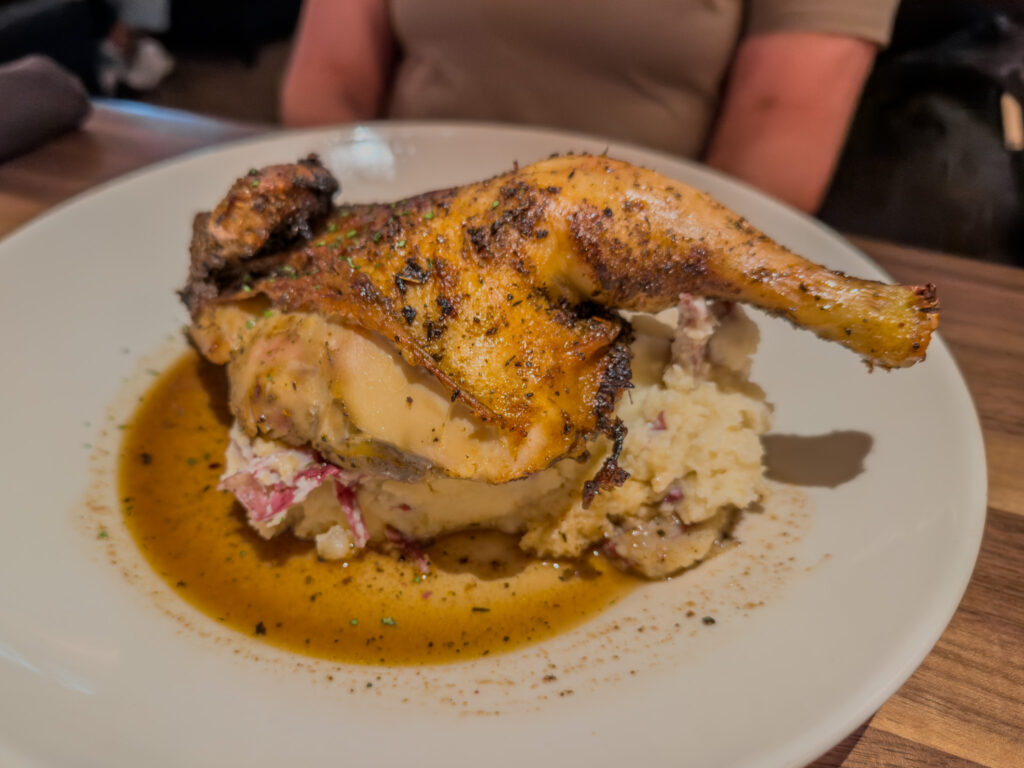 Herb rubbed and roasted to golden, finished with a silky demi glace, and served with those same honest smashed potatoes. Familiar and elevated at once.