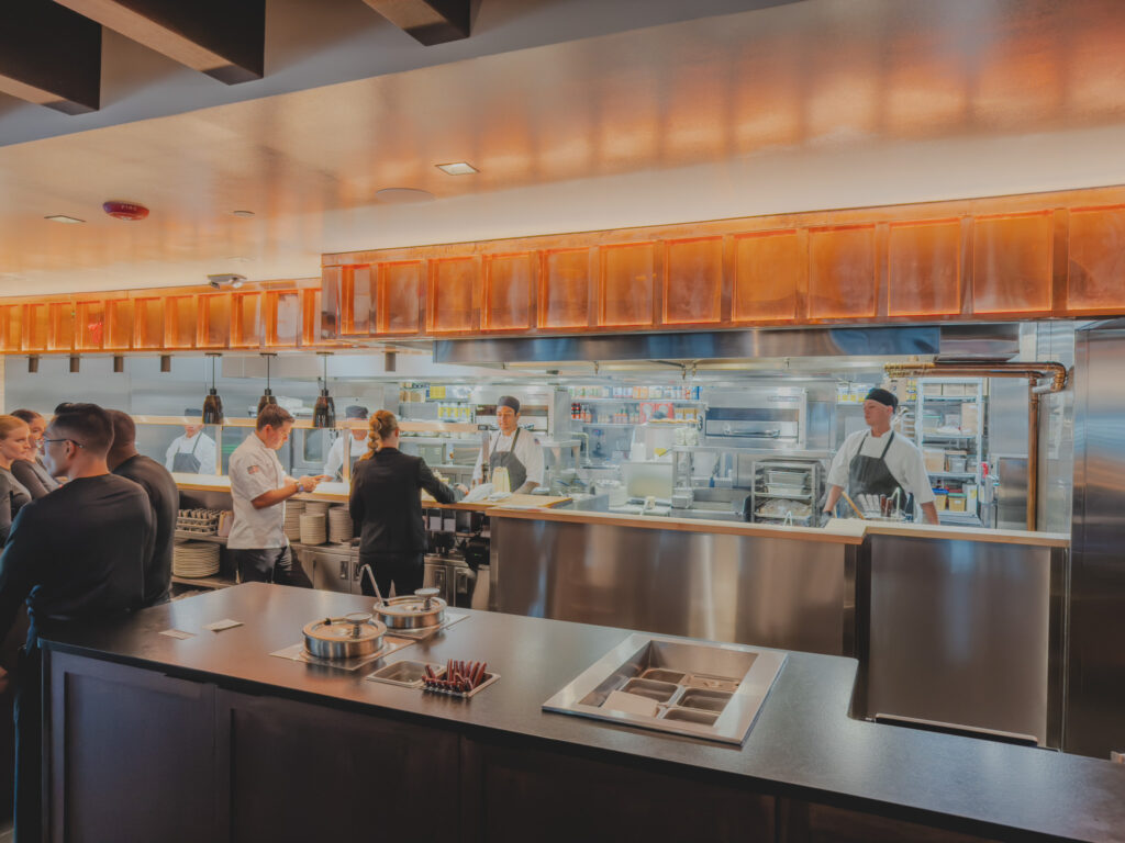Look across, and the open kitchen sets the tempo. You can watch steaks meet the hickory wood fire grill, hear that quick sizzle, and see plates finish at the pass. It reads as confidence, not theater.